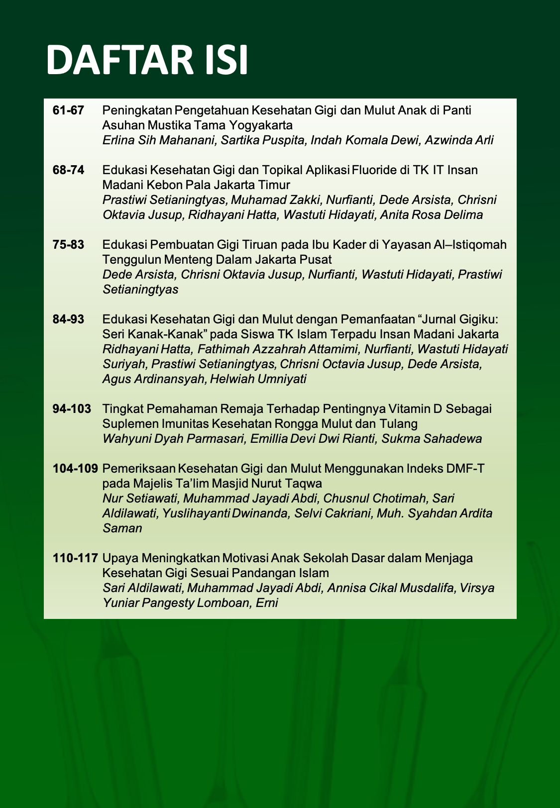 Prastiwi Setianingtyas, Muhamad Zakki, Nurfianti Nurfianti, Dede Arsista, Chrisni Oktavia Jusup, Ridhayani Hatta, Wastuti Hidayati, Anita Rosa Delima